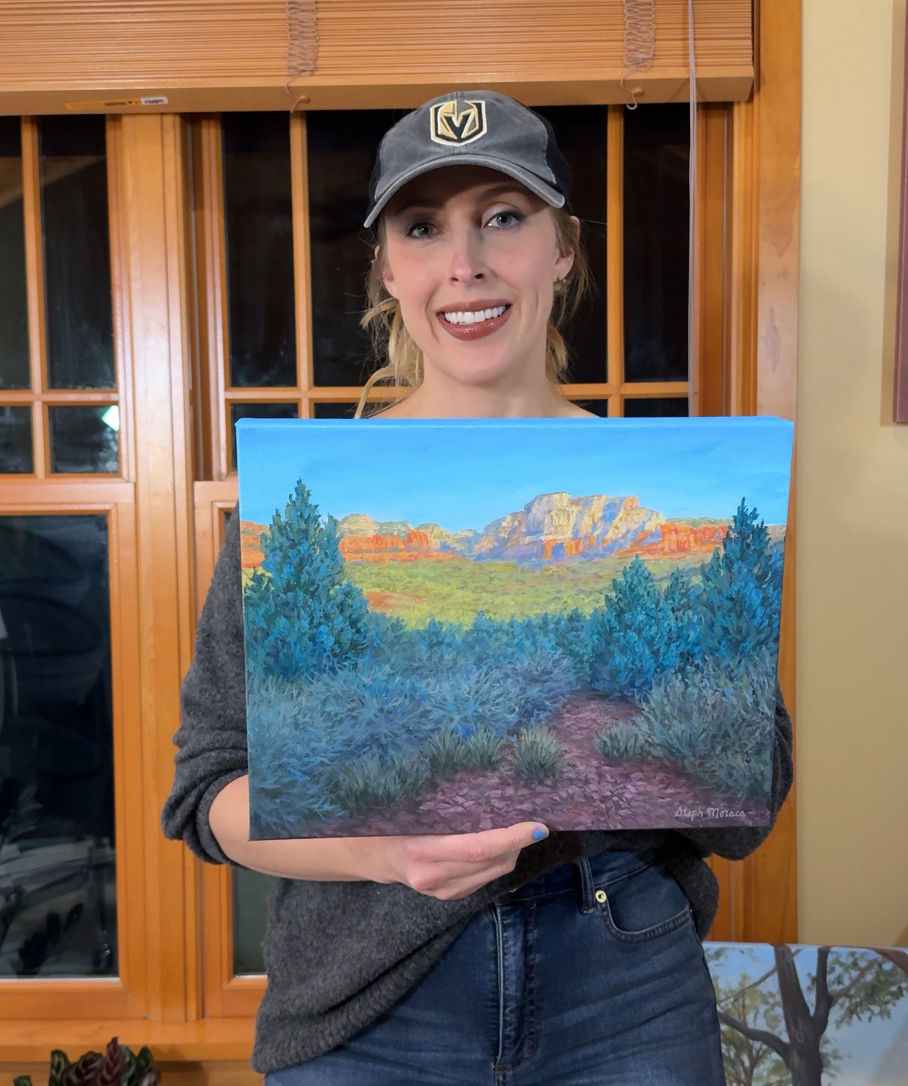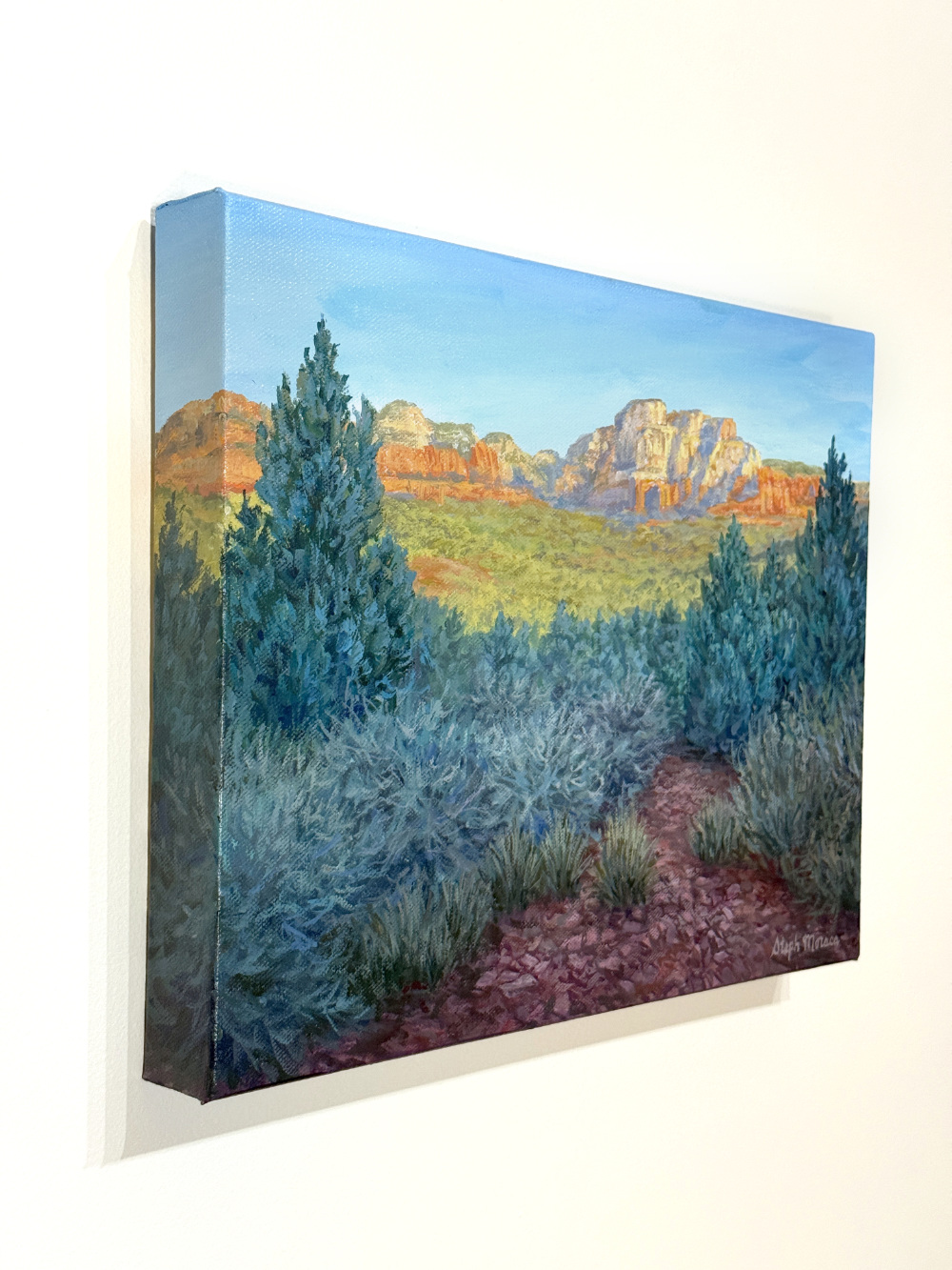 This original acrylic painting was inspired by morning views along the hiking trail to Devil's Bridge in Sedona, Arizona. Professional grade heavy body acrylic paint on canvas was used to create this piece. The completed painting is varnished to preserve the artwork, and a wire mount is installed on the back so it is ready to hang when you receive it.